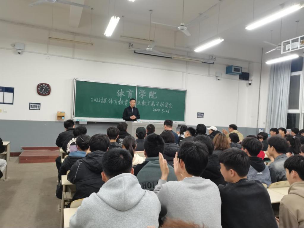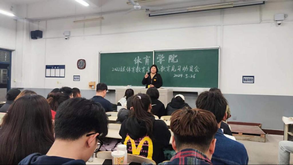 为了使2022级体育教育学生端正教育见习态度、明确教育见习目的及任务,保证教育见习工作顺利进行,久久精品网于3月26日19:00在1208教室召开2022级体育教育专业教育见习动员会。