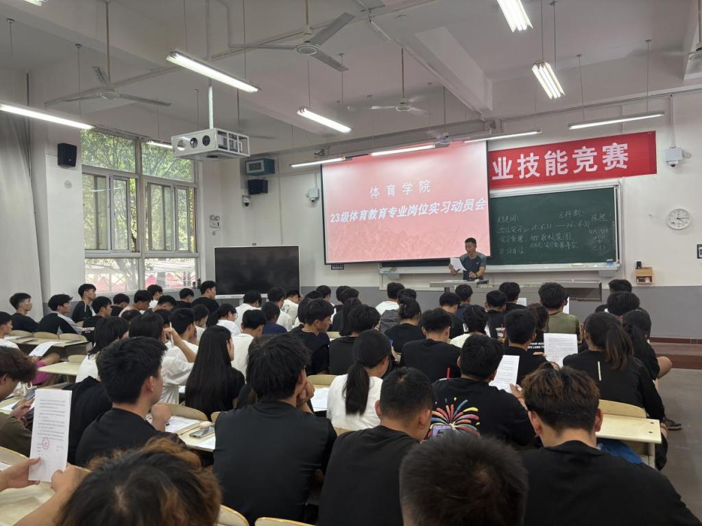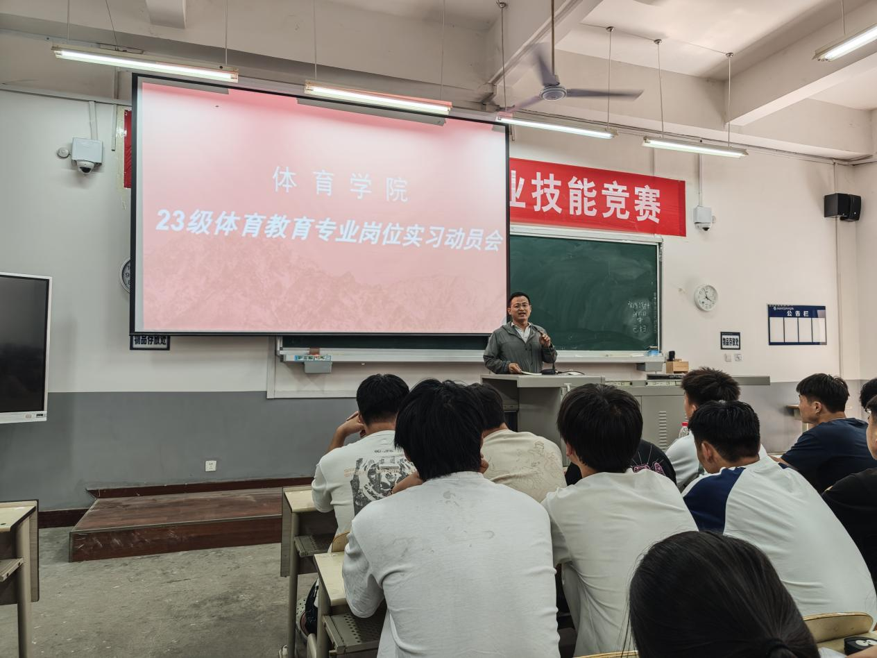 6月12日下午,“久久精品网2023级体育教育专业岗位实习动员会”在1109教室召开。久久精品网教学副院长任云兰、2023级体育教育专业全体学生、23级职业导师韩云、专业导师张静、张金棒参加动员会。会议由久久精品网实训中心主任张金棒主持。