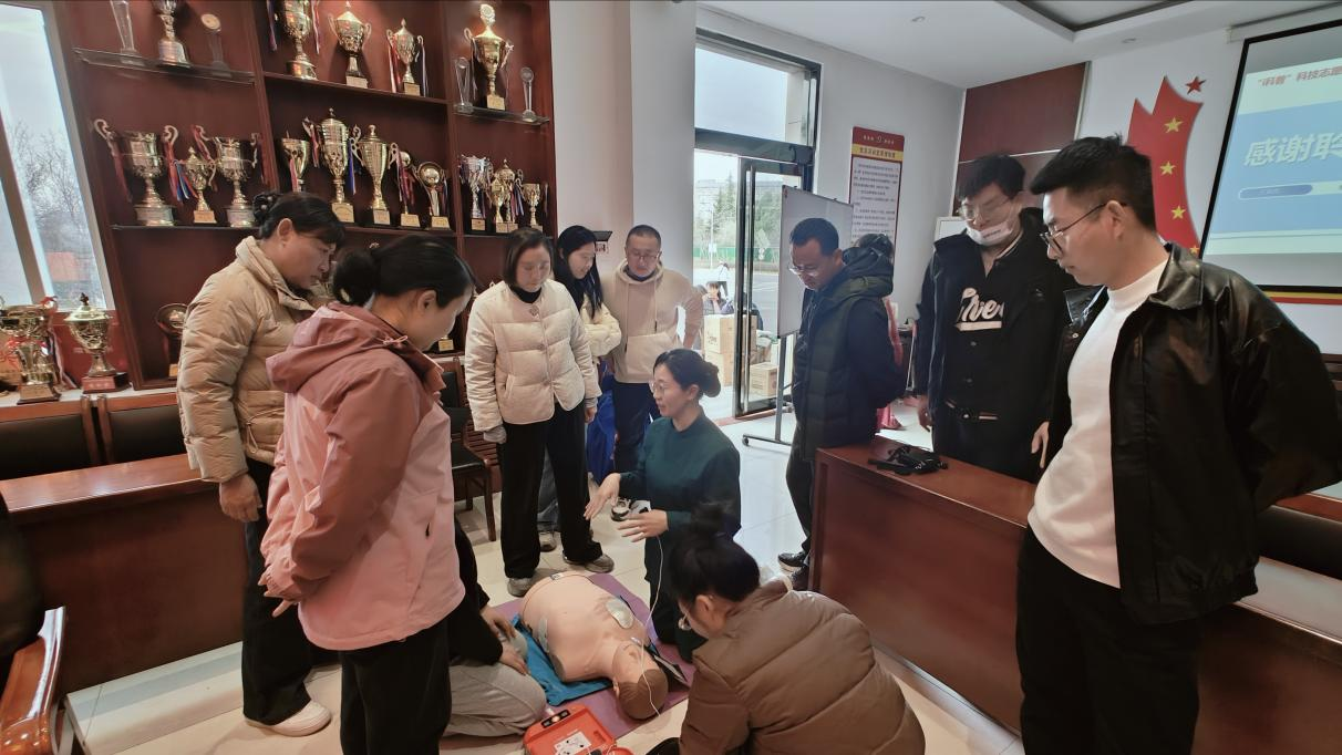 在理论讲解环节,郝老师运用多媒体教学,结合国内外实际案例,深入浅出地阐述心肺复苏的基本原理、“黄金4分钟”的关键意义,以及心脏骤停的常见原因和危害。针对胸外按压的位置、频率、深度,开放气道的方法,人工呼吸的操作要点等内容,依次进行细致讲解,并特别介绍自动体外除颤器(AED)的使用方法及重要性,让全体教师对心肺复苏有了更全面且深入的认识。