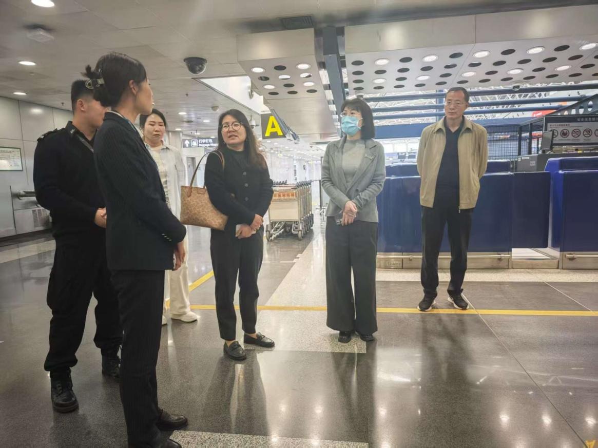 在首都机场,北京广沐金禾航空服务有限公司李程远经理陪同参观了公司安置在首都机场的实习岗位,张雪冰书记详细了解了学生工作情况食宿环境及薪资待遇。