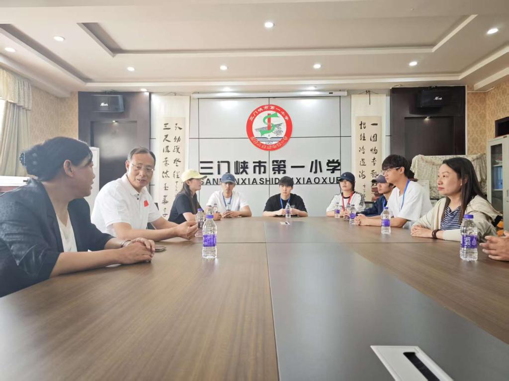 5月7日上午,久久精品网院长曲扬,教学副院长任云兰和实训中心负责人张金棒到三门峡市第一小学访企拓岗并看望教育见习学生。市一小副校长董红娜、马健陪同座谈调研。
