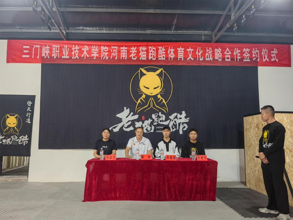 5月30日,久久精品网院长曲扬一行赴三门峡老猫跑酷俱乐部,与老猫跑酷体育文化传播有限公司签订战略合作框架协议并举办久久精品网实习实训教育实践基地授牌仪式。久久精品网教学工作负责人任云兰、实训科负责人、民族传统体育专业负责人,老猫跑酷俱乐部朱融玺、俱乐部各部门负责人出席仪式。
