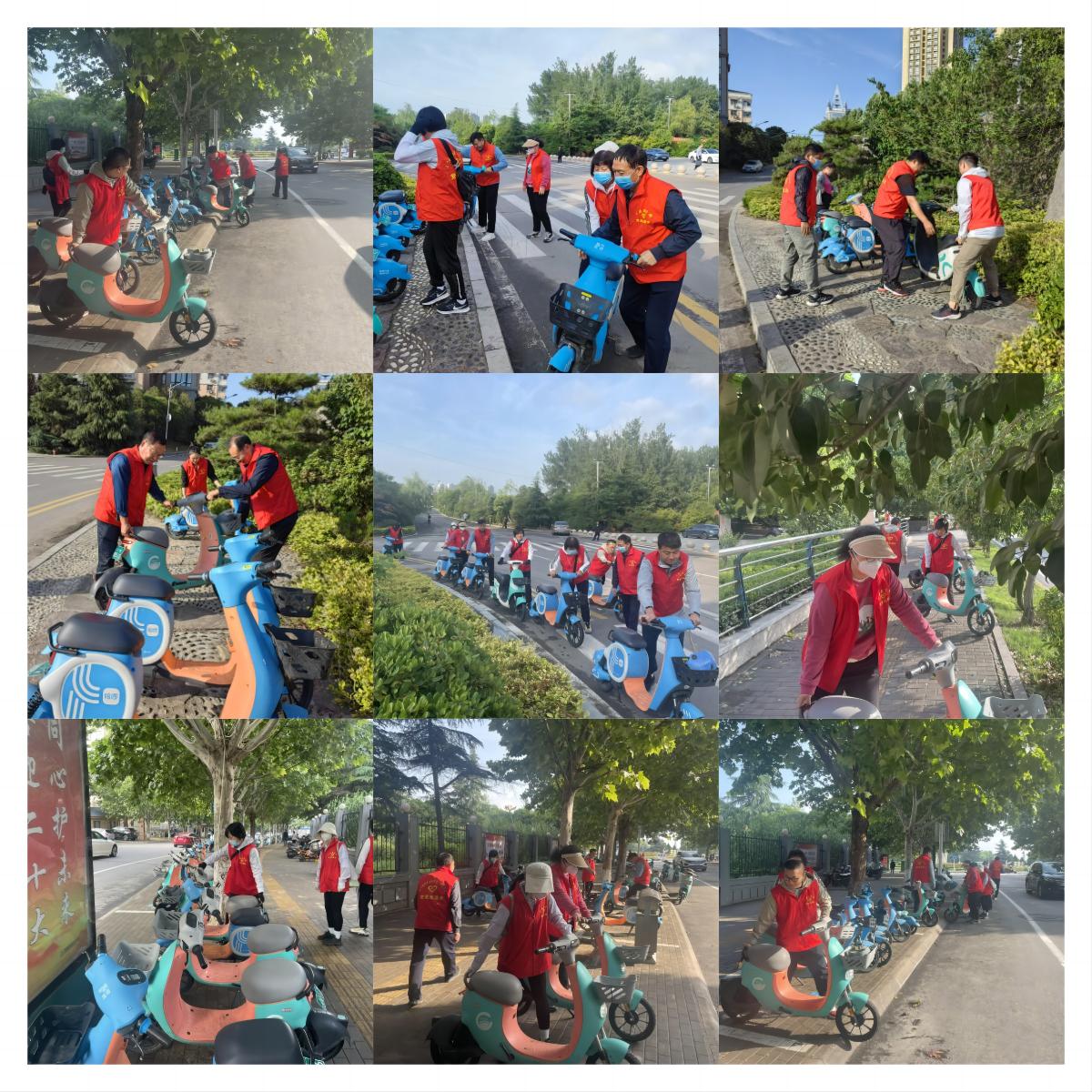 活动中,志愿者对学校附近公交站及道路两侧无序停放的共享单车,按照“规范停放,摆放有序,朝向一致”的原则进行整理摆放,共享单车陆续回归原位,志愿者的辛勤付出得到过往路人的纷纷点赞。